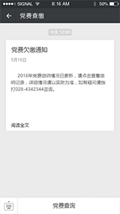 對黨費進行導入,對未繳黨費黨員進行通知和查詢。